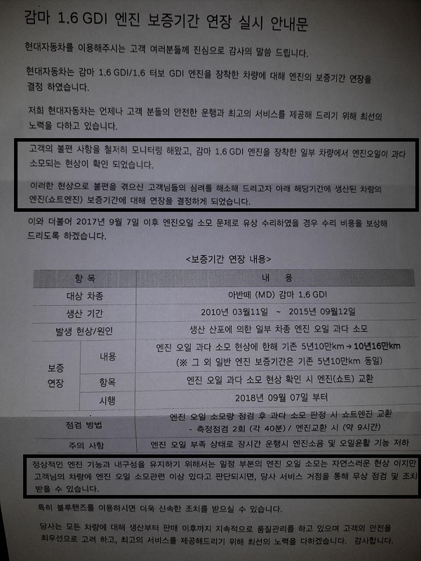 상당히 심각한 문제임을 현대차는 인식하고 현대차에선 보증기간연장 함으로